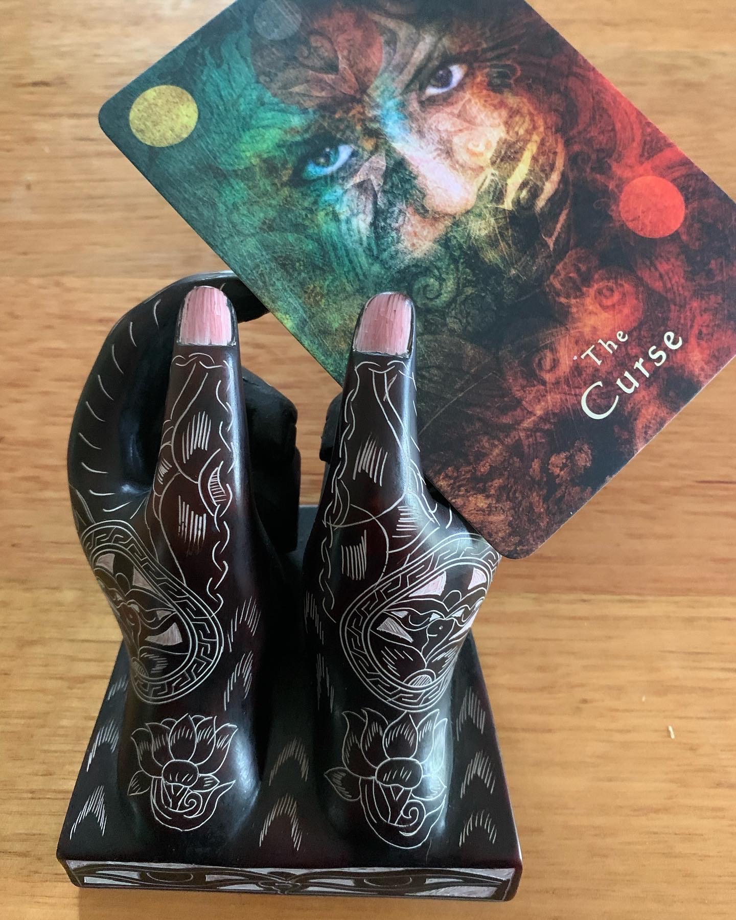 As the Hand presented a card title ‘The Curse’ Jacquette fingered the small card with the image of Aphrodite that I had slipped into the pocket of her cloak. “It’s not Aphrodite who has placed a curse on your ancestral line” said our hostess. “It’s more like the handiwork of another goddess. They have a long history of being spiteful towards women with strong Aphrodite energy. Identifying so closely with her can, as you well know, bring challenges.