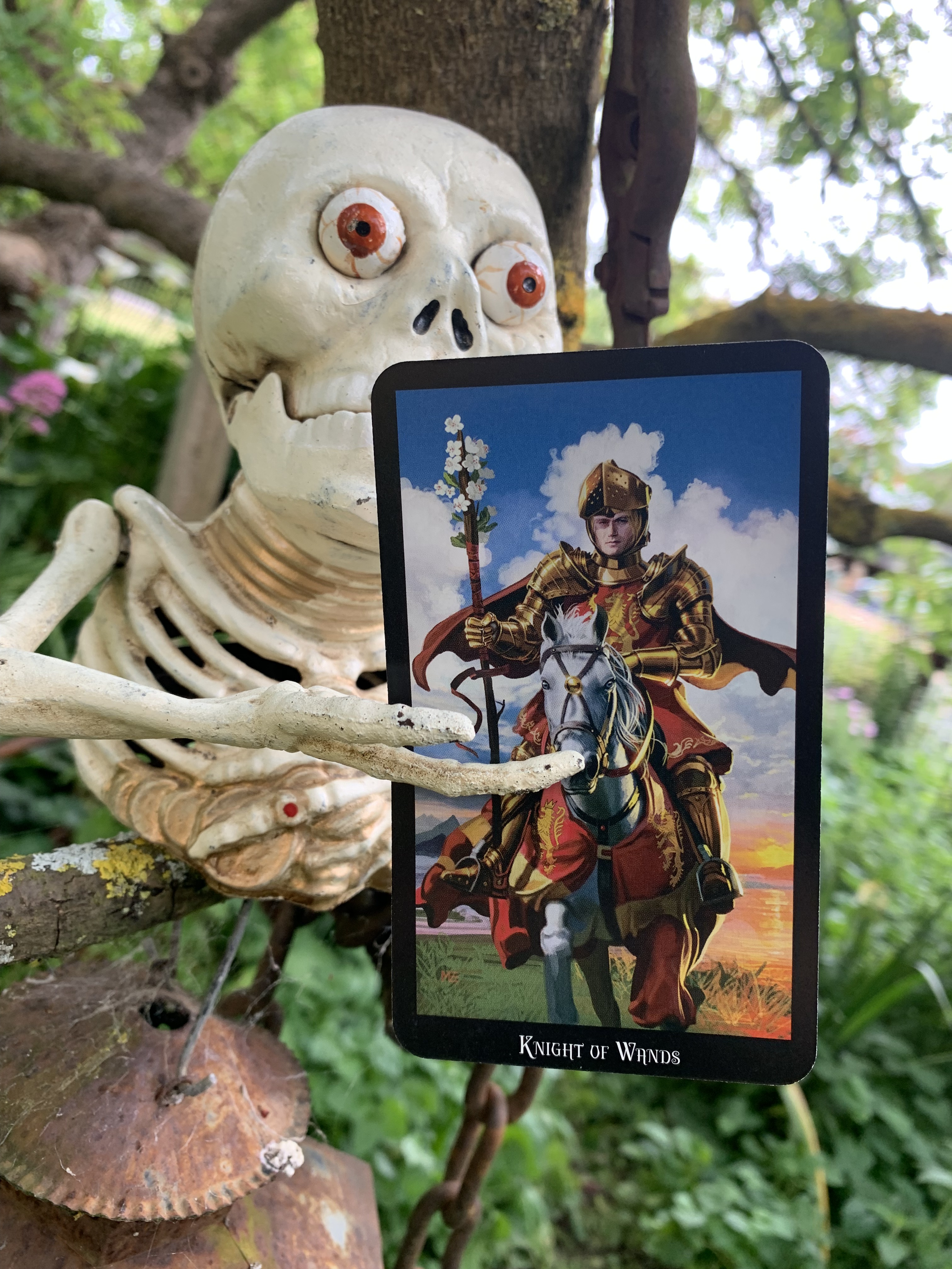 The Knight of Wands, assessing the situation, called upon the other three knights to make haste, come and assist this damsel. The Knights Code of Chivalry was a moral system that stated that all knights should protect others who cannot protect themselves, such as women, children and elders. They came promptly, riding on their trusty steeds, wearing full armor.