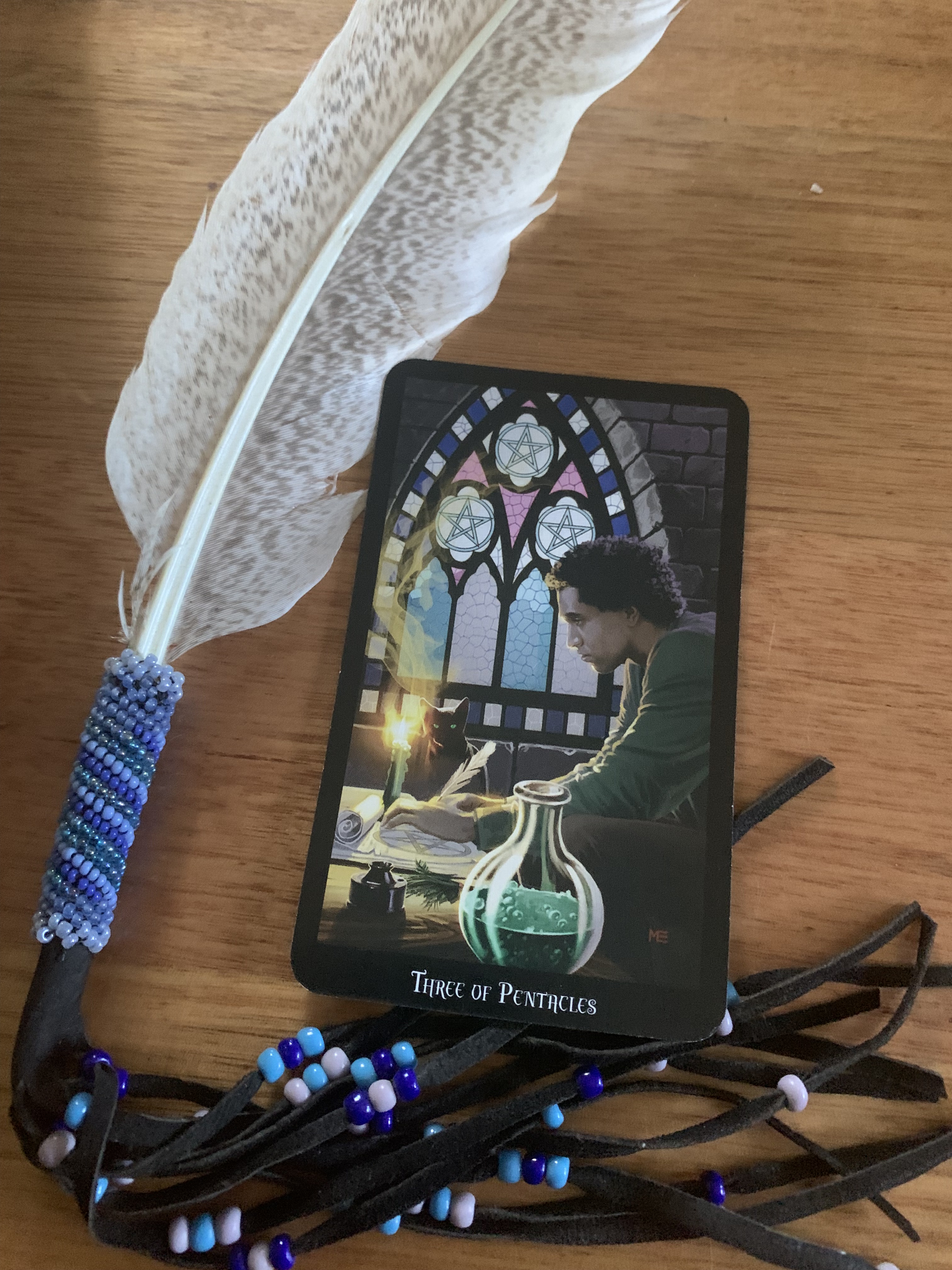 As the Knight helped pack all our provisions on Caspian, the sure footed, steadfast donkey who was accompanying us to the Abbey, I pulled out my pocket travel tarot deck and, before doing the spread shown here, called upon Jacquette to make an offering to Hekate, the goddess of magic, witchcraft, the night, moon, ghosts and necromancy.