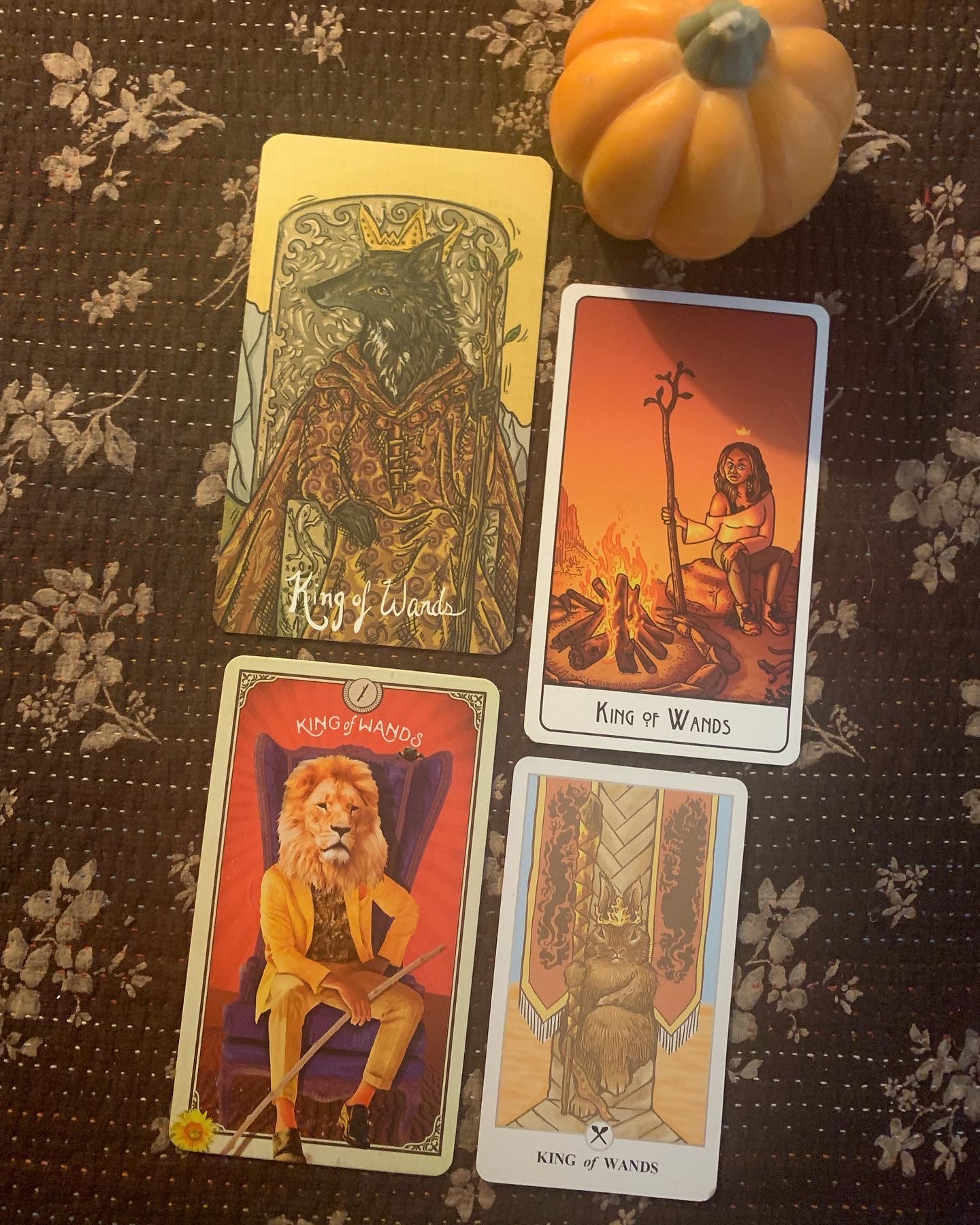 Where the Knight of Wands showed us untamed dynamism, the King is the real deal. This is someone who gets things done. Fuelled by inspiration, they have the wisdom and experience to actually bring ideas into the real world. They see things through, and this is a card for completion and achievement.