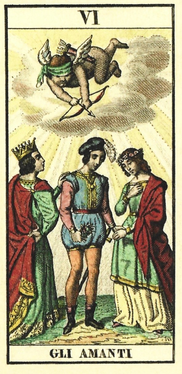 As Rachael Pollack points out, the 6th Tarot Card was once entitled Choice, suggesting that an individual may have to choose between desires. Equally the choice can refer to a person’s whole life, the decision about where to direct one’s passion.
