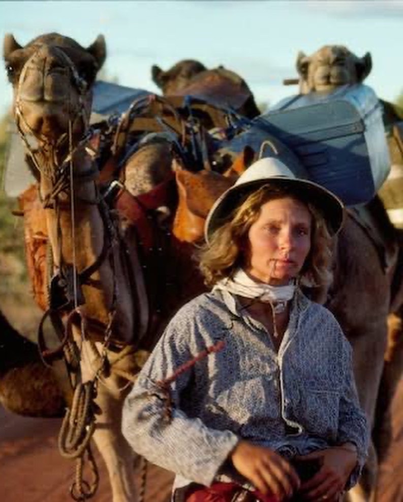 The ‘Camel Lady’, Robyn Davidson, with her beloved dog, Diggity, and four camels, trekked 2700 kilometres across some of Australia’s most remote and inhospitable deserts, from Alice Springs to the Indian Ocean, in 1977.